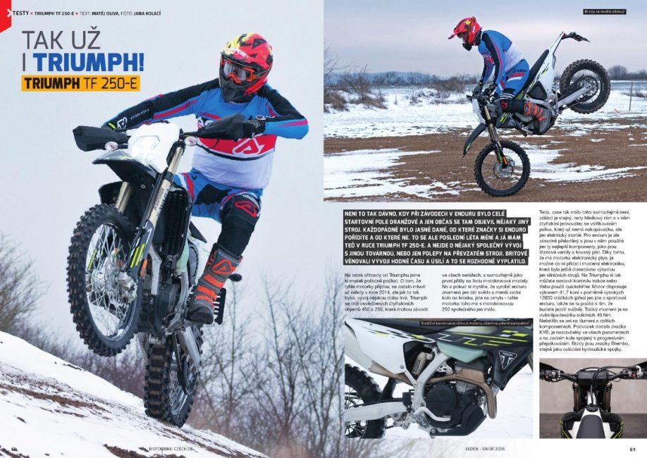 Není to tak dávno, kdy při závodech v enduru bylo celé startovní pole oranžové a jen občas se tam objevil nějaký jiný stroj. Každopádně bylo jasně dané, od které značky si enduro pořídíte a od které ne. To se ale poslední léta mění a nám se dostal do rukou Triumph TF 250-E. A nejde o nějaký společný vývoj s jinou továrnou, nebo jen polepy na převzatém stroji. Britové věnovali vývoji hodně času a úsilí a to se rozhodně vyplatilo.