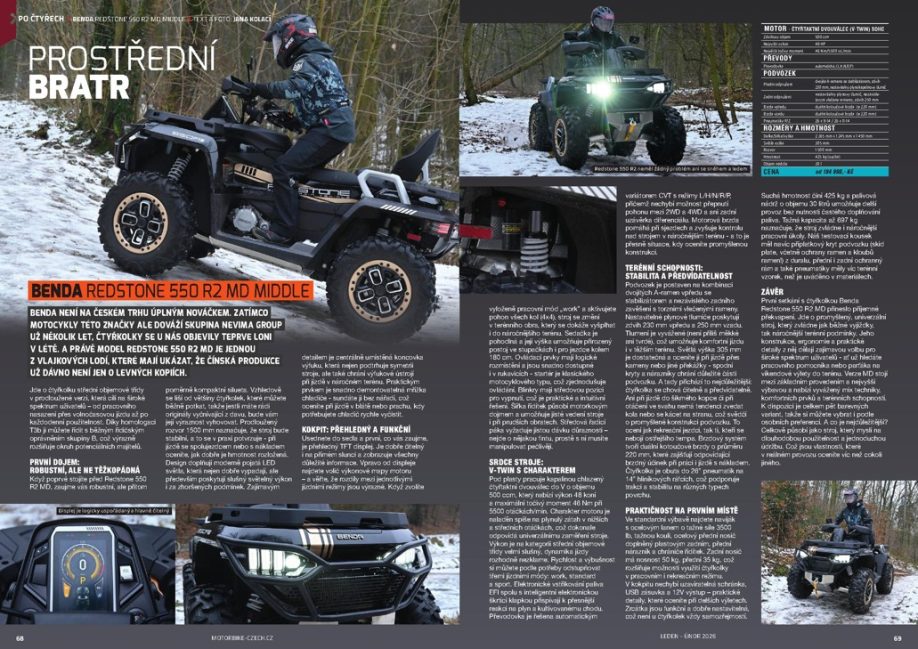 Benda není na českém trhu úplným nováčkem. Zatímco motocykly této značky ale dováží skupina Nevima Group už několik let, čtyřkolky se u nás objevily teprve loni v létě. A právě model Redstone 550 R2 MD je jednou z vlajkových lodí, které mají ukázat, že čínská produkce už dávno není jen o levných kopiích.