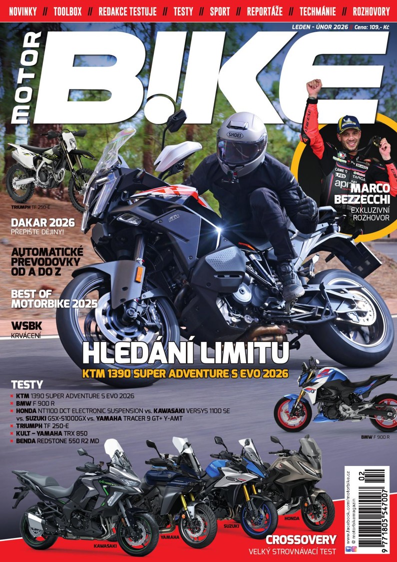 A je to tady! Co? No přece první vydání Motorbike letošního roku! Jako obvykle vychází na začátku února a jako obvykle v něm najdete nejen testy, ale i reportáže z motosportu, informace o technice a další. A my doufáme, že vám náš časopis zpříjemní čekání na sezónu, která, ač to teď tak nevypadá, je tu coby dup!