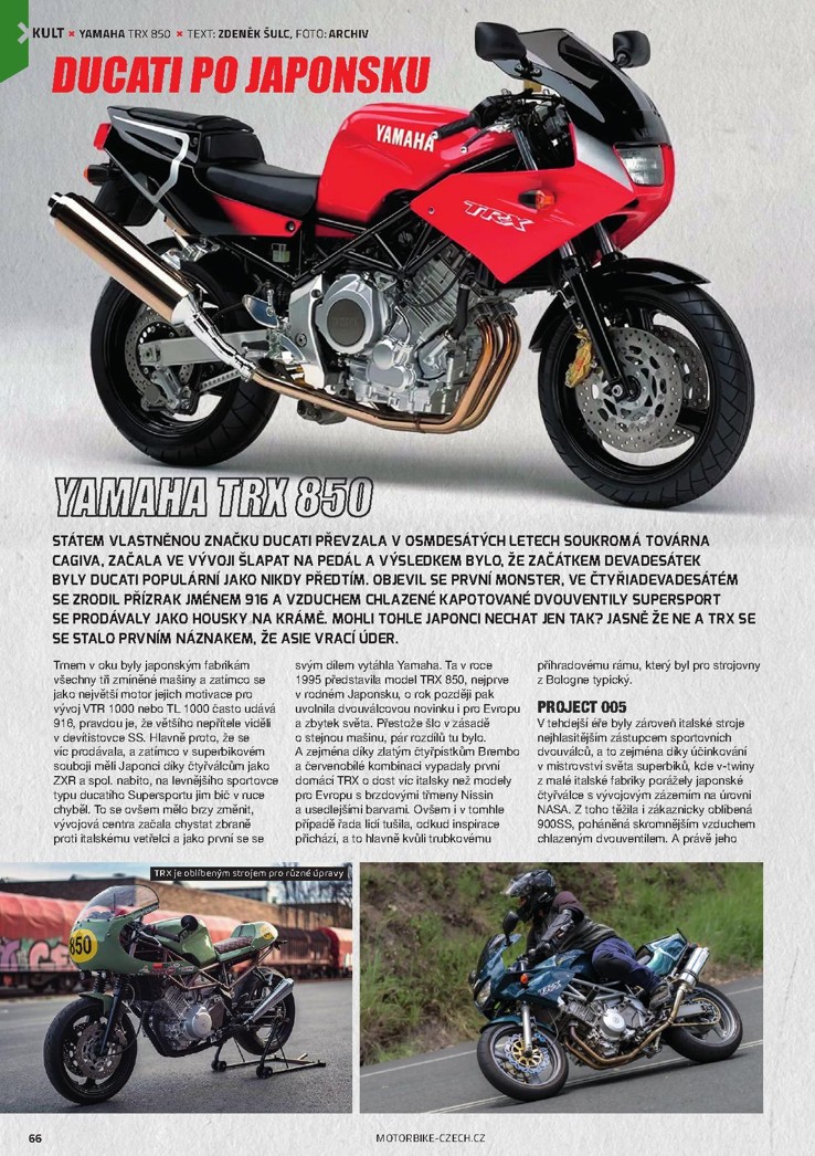 Státem vlastněnou značku Ducati převzala v osmdesátých letech soukromá továrna Cagiva, začala ve vývoji šlapat na pedál a výsledkem bylo, že začátkem devadesátek byly Ducati populární jako nikdy předtím. Objevil se první Monster, ve čtyřiadevadesátém se zrodil přízrak jménem 916 a vzduchem chlazené kapotované dvouventily Supersport se prodávaly jako housky na krámě. Mohli tohle Japonci nechat jen tak? Jasně že ne a TRX se se stalo prvním náznakem, že Asie vrací úder.