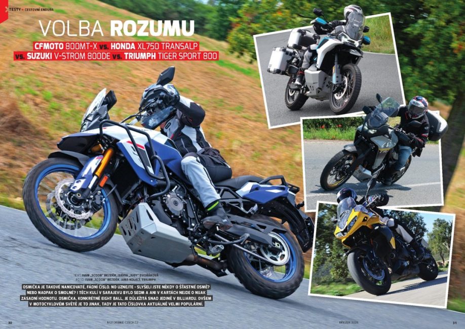 Osmička je takové nanicovaté, fádní číslo. No uznejte – slyšeli jste někdy o šťastné osmě? Nebo naopak o smolné? I těch kulí v Sarajevu bylo sedm a ani v kartách nejde o nijak zásadní hodnotu. Osmička, konkrétně Eight Ball, je důležitá snad jedině v billiardu. Ovšem v motocyklovém světě je to jinak, tady je tato číslovka aktuálně velmi populární. Zvlášť v kategorii cestovních strojů.