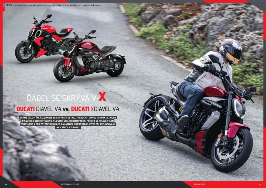 Známé úsloví říká, že ďábel se skrývá v detailu – u Ducati Diavel je oním detailem písmeno X. Jedno písmeno, vlastně vcelku nenápadné, přesto ve finále velmi podstatné a pro potenciálního zákazníka naprosto klíčové při rozhodování, jakého konkrétní „čerta“ si vybrat.