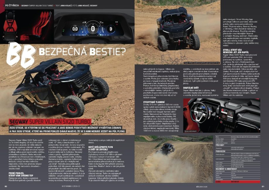 Jsou stroje, se kterými se dá pracovat a jako bonus poskytují i možnost využití na zábavu. A pak jsou stroje, které na první pohled dávají najevo, že s nimi nebudete jezdit na půl plynu. Mezi ty druhé patří právě Segway Super Villain SX20 Turbo.