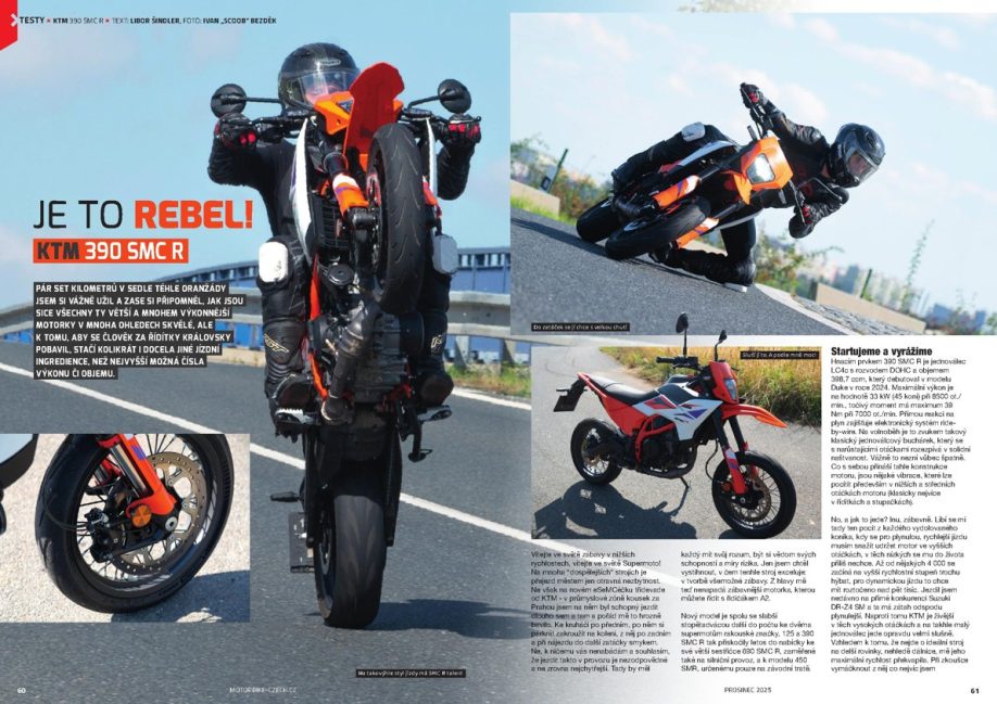 Pár set kilometrů v sedle téhle oranžády si náš Libor vážně užil a zase si připomněl, jak jsou sice všechny ty větší a mnohem výkonnější motorky v mnoha ohledech skvělé. Ale k tomu, aby se člověk za řídítky královsky pobavil, stačí kolikrát i docela jiné jízdní ingredience, než vysoká čísla výkonu či objemu.
